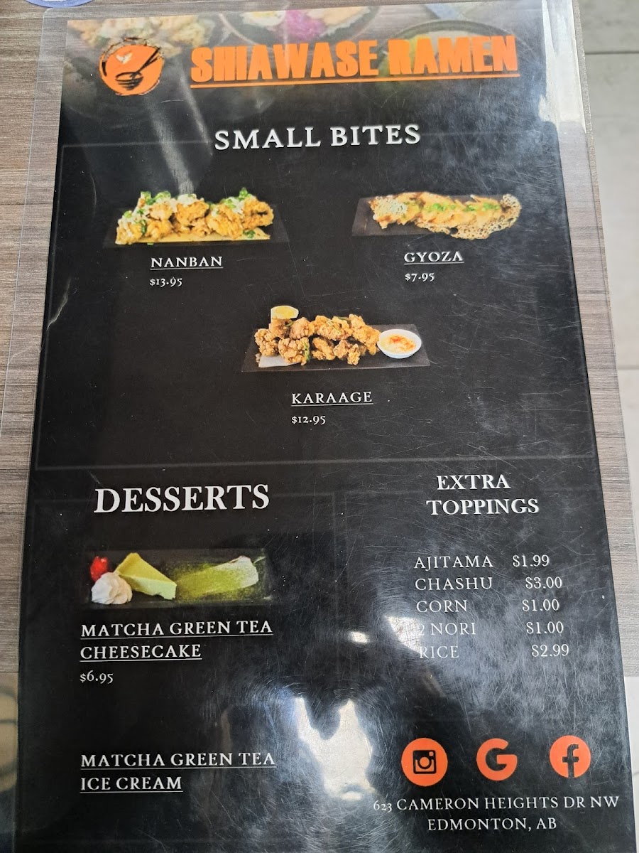 Welcome to Shiawase Ramen, a culinary gem nestled in the heart of Edmonton, Canada. Located at 623 Cameron Heights Dr NW, this inviting establishment is dedicated to serving up authentic Japanese flavors that are both comforting and innovative. With a cozy atmosphere and a commitment to quality, Shiawase Ramen transcends traditional dining, offering a flavorful experience that leaves an impression.